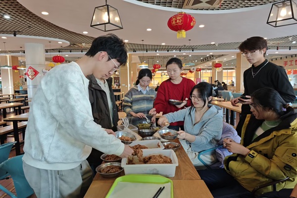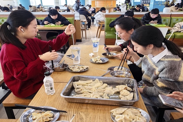 同学们吃饺子 李俊摄