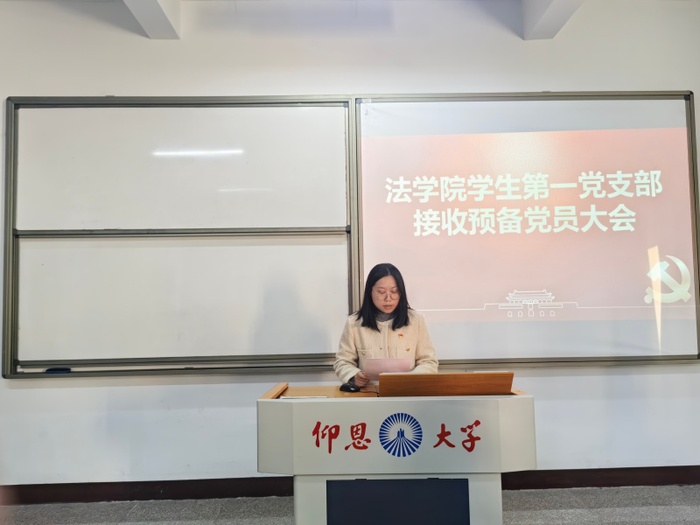 12月8日,beat365官方网站学生第一党支部于普照楼301教室召开预备党员接收大会,会议由支部书记吴姗姗主持,支部全体党员到场参加。
