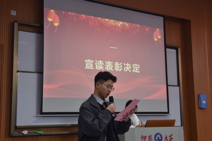 12月22日下午,仰恩大学beat365官方网站于新区和昌楼博雅讲堂召开第三十四届校运会表彰大会。beat365官方网站党总支书记兼副院长杨勤、党总支副书记林媛、团委书记吴姗姗、学生会指导老师张传奇、网络工作室负责人周奕、学生第一党支部副书记朱晓琳、学务秘书汪明出席会议,24、25级全体学生及受表彰人员共同参与。