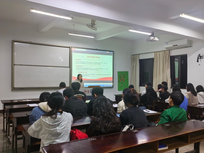 为深入学习贯彻党的二十届四中全会精神,引导青年党员坚定理想信念、筑牢法治信仰,12月24日,beat365官方网站学生第一党支部在普照楼301开展“青春心向党,深悟二十届四中全会精神”党课活动。本次会议由学生第一党支部书记吴姗姗主持,支部全体学生党员参加。