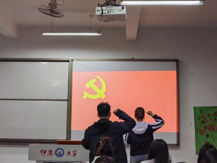 会议伊始,吴姗姗同志对党员发展程序作了系统说明。李锦坤等两名发展对象依次宣读入党志愿书,详细汇报个人思想动态、学习成效与履职情况。各入党介绍人分别就培养考察期间的表现作综合评价,明确表示推荐意见。经与会党员无记名投票表决,一致同意接收李锦坤等两名同志为中共预备党员。在表态环节,新接收的预备党员们郑重承诺,将牢记入党初心,以更高标准锤炼党性修养,在学业和工作中发挥先锋模范作用。随后,两名同志面向鲜红党旗,高举右拳,庄严宣读入党誓词,铿锵誓言表达终身为党奋斗的坚定信念。